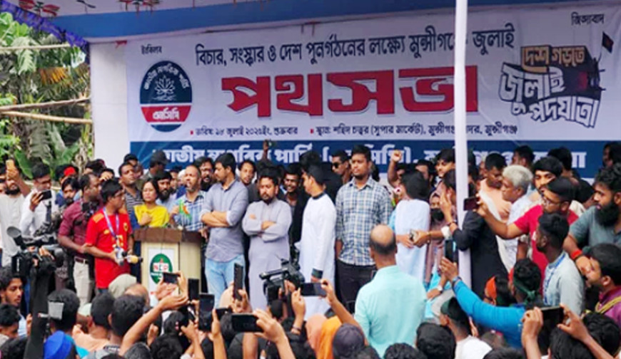 মুন্সীগঞ্জ শহরে “দেশ গড়তে জুলাই পদযাত্রা” সফলভাবে শেষ করে পথসভা আয়োজন করেছে জাতীয় নাগরিক পার্টি (এনসিপি)। আজ শুক্রবার (১৮ জুলাই)