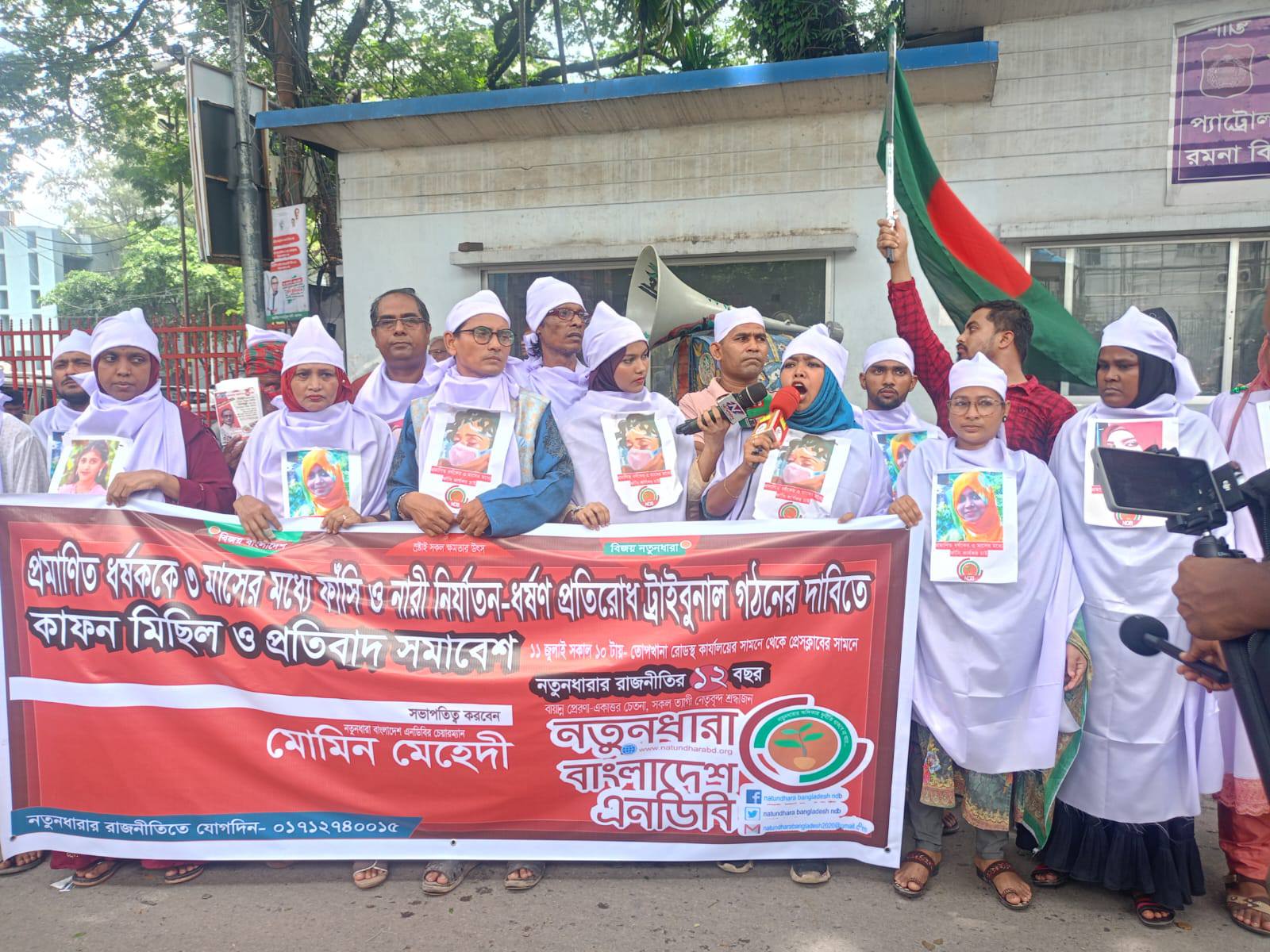 ৩ মাসের মধ্যে প্রমাণিত ধর্ষকের ফাঁসি ও ধর্ষণ-নারী নির্যাতন প্রতিরোধ ট্রাইবুনাল গঠনের দাবিতে প্রতিকি কাফন মিছিল ও প্রতিবাদ সমাবেশ অনুষ্ঠিত