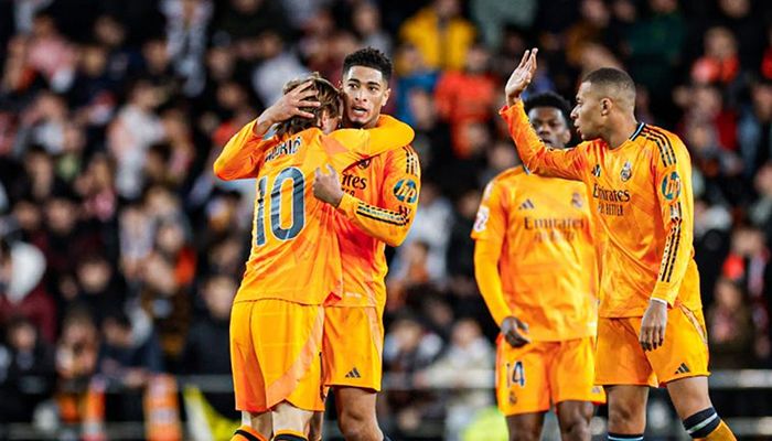 স্প্যানিশ লা লিগায় পিছিয়ে পড়েও শেষ পর্যন্ত জয় নিশ্চিত করেছে রিয়াল মাদ্রিদ। ভ্যালেন্সিয়াকে তাদেরই ঘরের মাঠে ২-১ গোলে হারিয়েছে লস