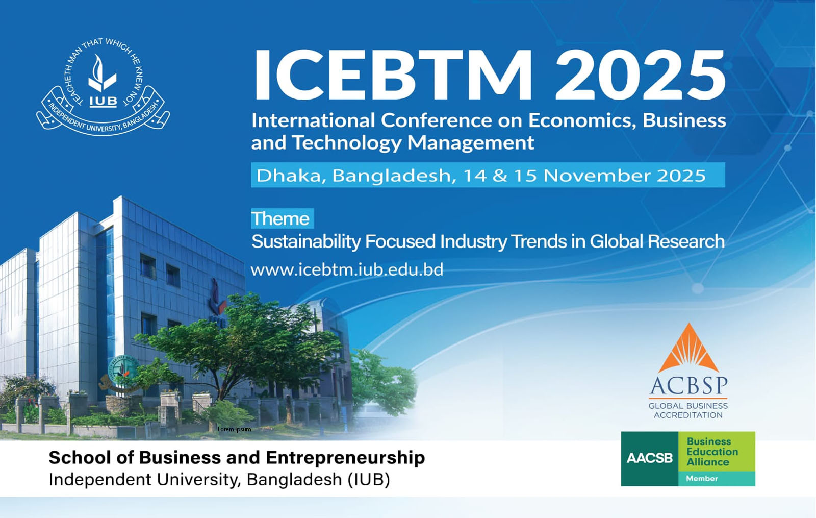 Independent University, Bangladesh (IUB) will host the International Conference on Economics, Business and Technology Management (ICEBTM 2025) on November 14-15,
