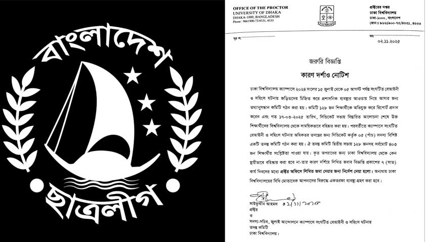 Dhaka University authorities have issued show-cause notices to 403 banned Bangladesh Chhatra League (BCL) leaders involved in attacks on students