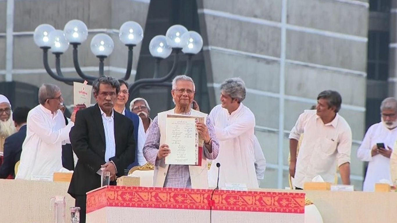 Prof Muhammad Yunus, chief adviser of the interim government, along with leaders of various political parties, signed the July National