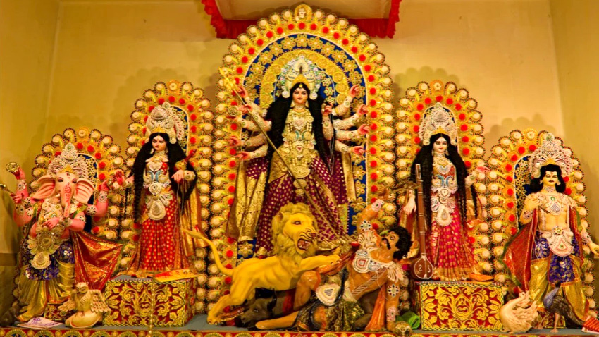 The five-day Sharadiya Durga Puja, the largest religious festival of the Bangalee Hindu community, began across the country on Sunday