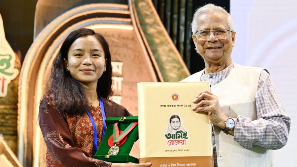 National women’s football team star Ritu Porna Chakma was awarded the prestigious Begum Rokeya Padak from the Chief Adviser Professor