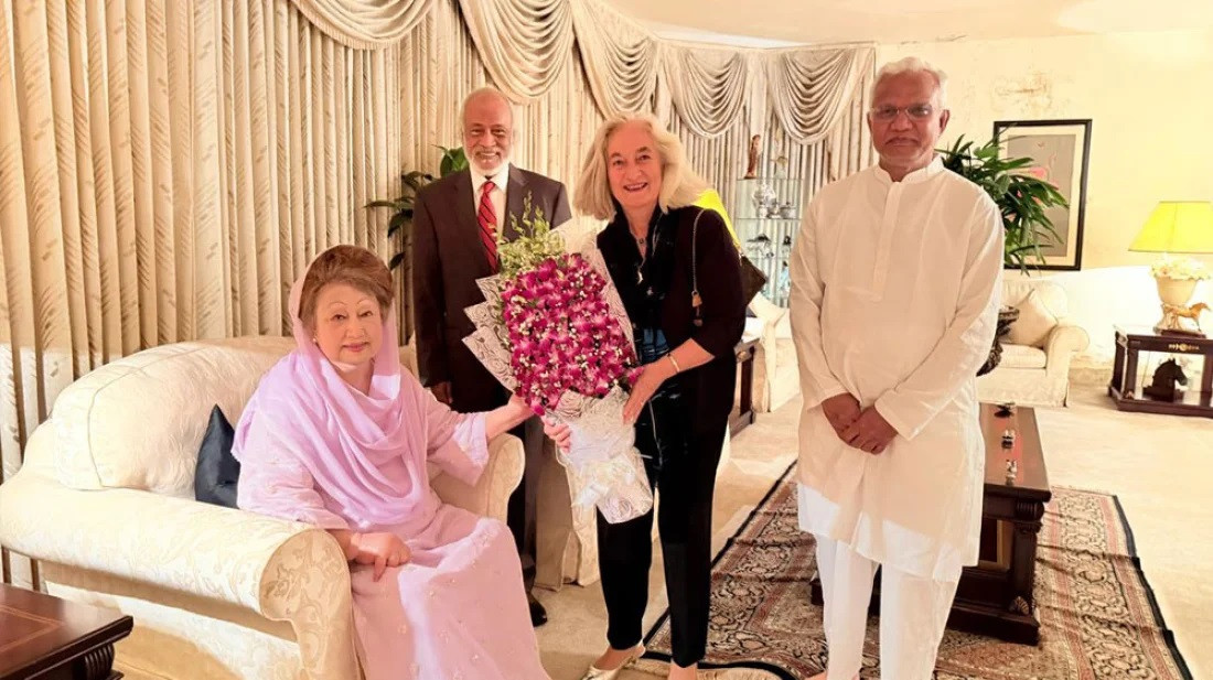 The outgoing French Ambassador, Marie Masdupuy, paid a farewell call on BNP Chairperson Begum Khaleda Zia at her residence Firoza