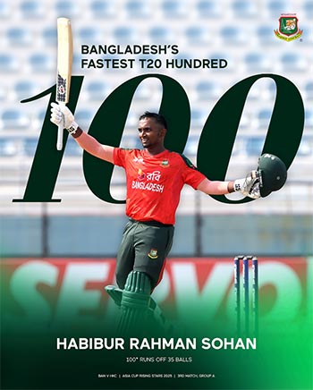 Opener Habibur Rahman Sohan became the fastest centurion as a Bangladeshi batter in recognized T20 cricket when he smashed a